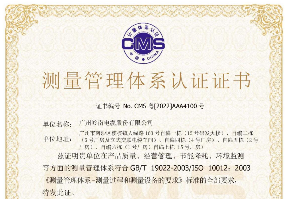 近日,智光電氣控股公司廣州嶺南電纜股份有限公司(以下簡稱“嶺南電纜”)測量管理體系順利通過認(rèn)證審核,榮獲AAA級“測量管理體系認(rèn)證證書”,標(biāo)志著嶺南電纜在產(chǎn)品質(zhì)量、經(jīng)營管理、節(jié)能降耗、環(huán)境監(jiān)測等方面的...