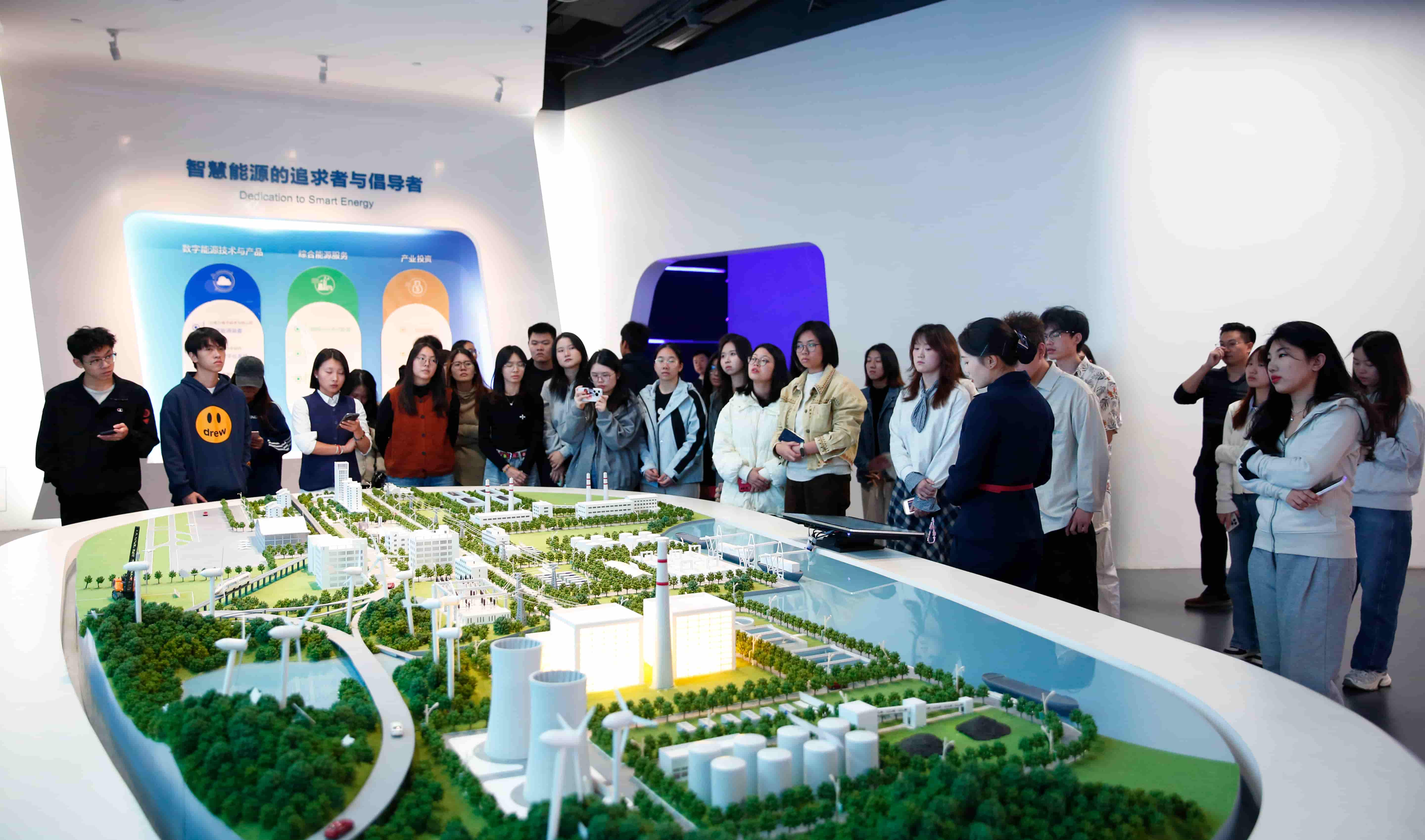 交流會上還展示了智光電氣打造的“新能源+儲能”行業標桿示范性項目,公司以自主領先的級聯型高壓儲能技術實力,為構建以新能源為主體的新型電力系統注入了強勁動力,有學生表示:“當可持續發展理念化為高效運轉的儲能矩陣,我們好像真正看到和摸到了能源轉型的脈搏。”
