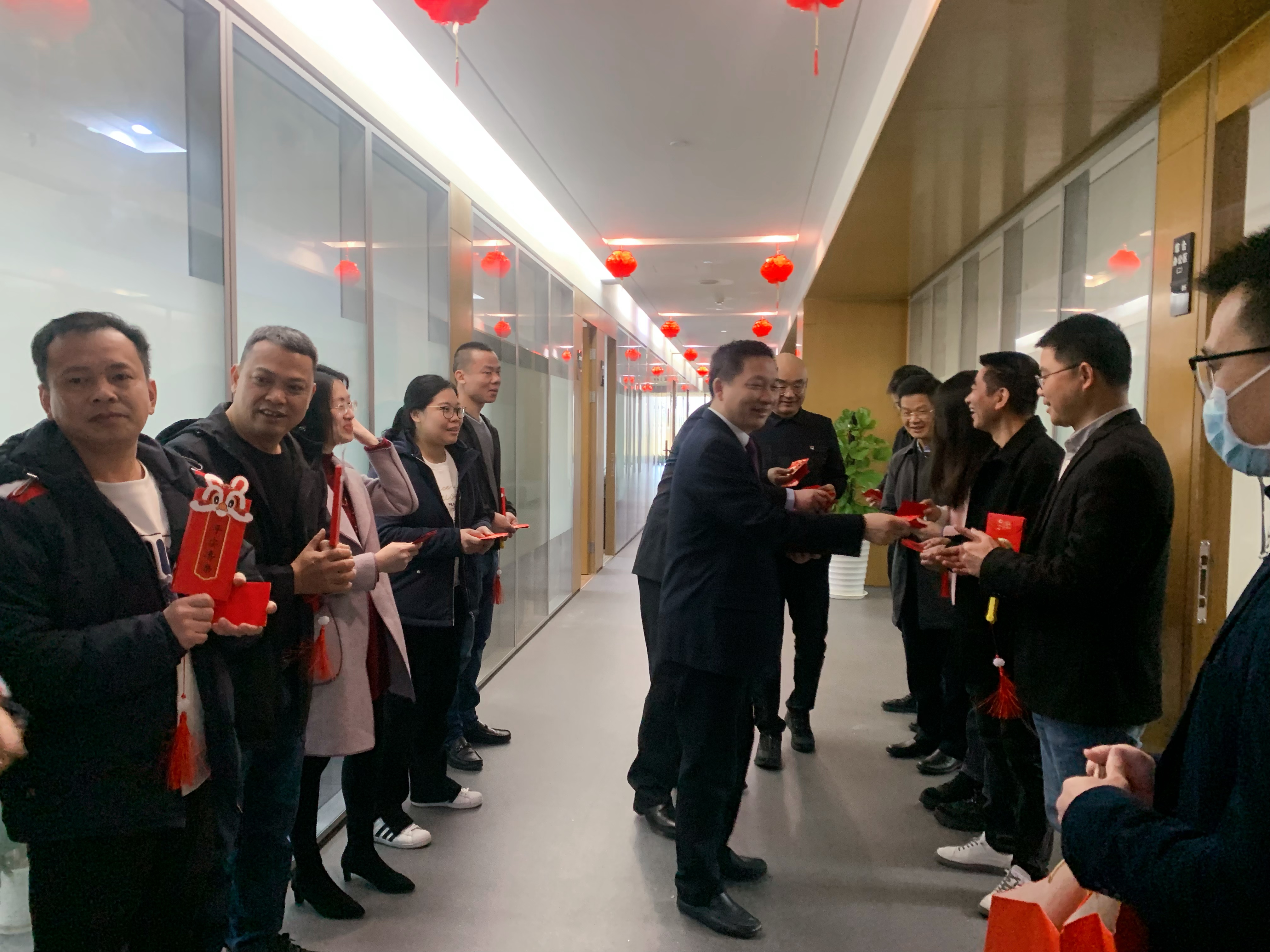 活動過后,公司經營管理層來到辦公區給員工拜年,派發開年利是,送上新年祝福,現場陣陣歡聲笑語,讓還處于“待機”狀態的員工迅速恢復元氣,回歸到“滿血”狀態。